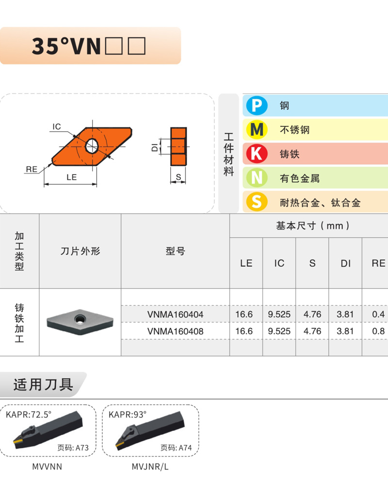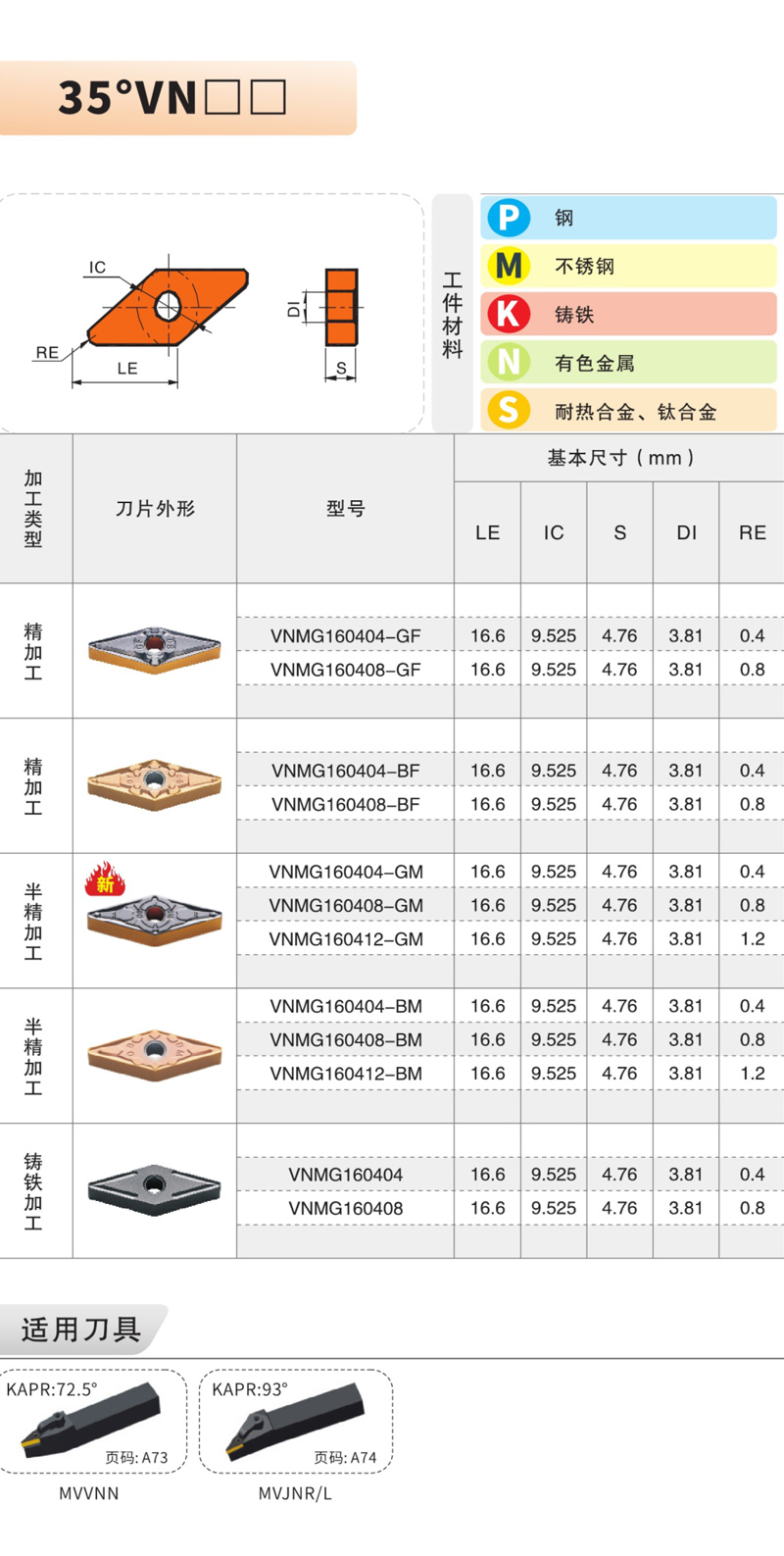 品名:K05-K25數(shù)控刀片 牌號:VNMG160408-PM