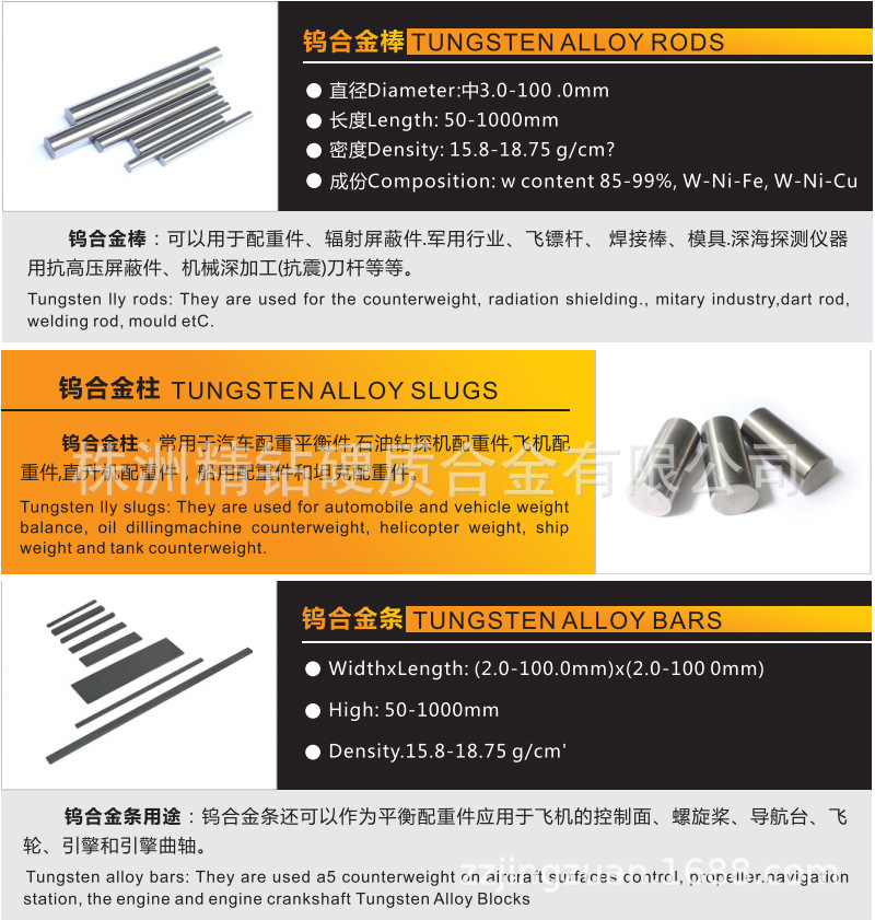 4. 成分:鎢含量:85-99%,W-Ni-Fe,W-Ni-Cu