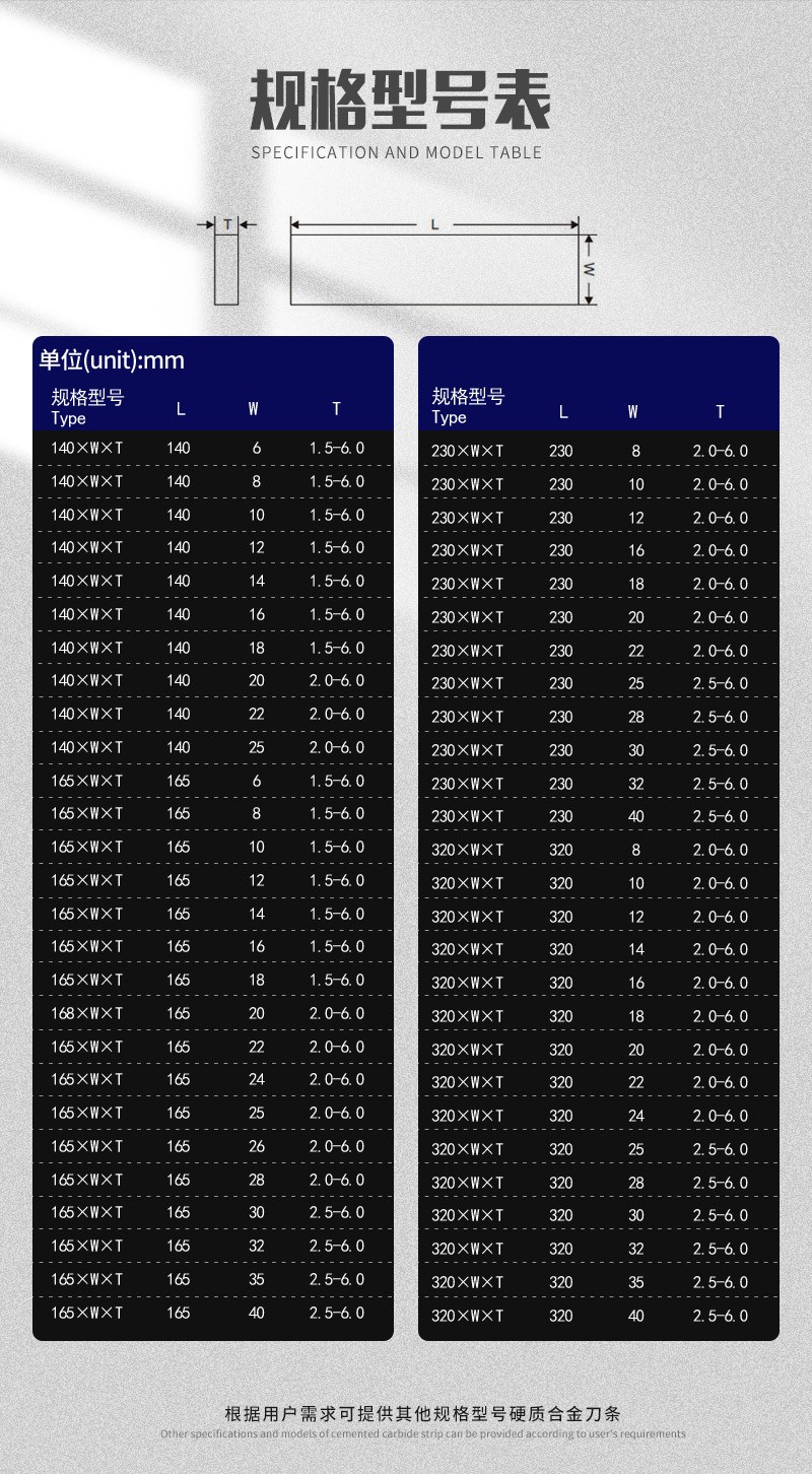 6、各種尺寸規(guī)格YT14鎢鋼合金長條均可生產(chǎn)定制。
