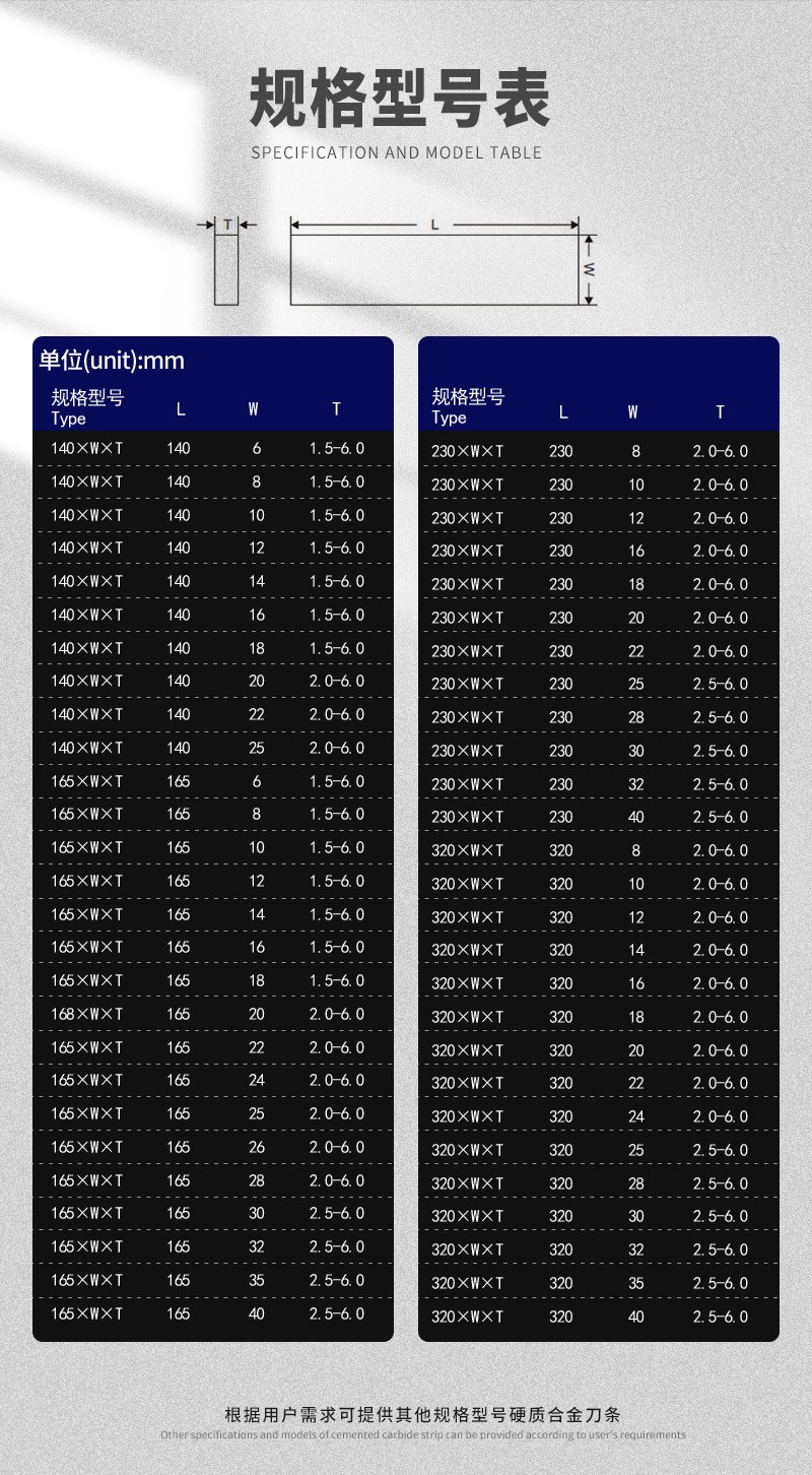 6. 株洲精鉆可根據(jù)客戶要求生產(chǎn)各種尺寸規(guī)格yt5鎢鋼長(zhǎng)條